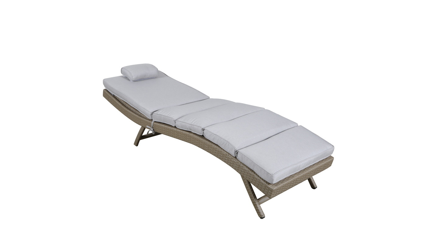 В комплекте прилагается матрас светло-серого цвета из водостойкой ткани.Мебель натуральных расцветок гармонично вписывается на пляже, в саду, на террасе.