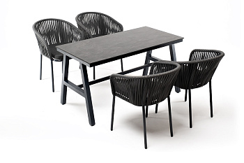 "Малага" обеденная группа на 6 персон со стульями "Марсель", каркас темно-серый, роуп темно-серый